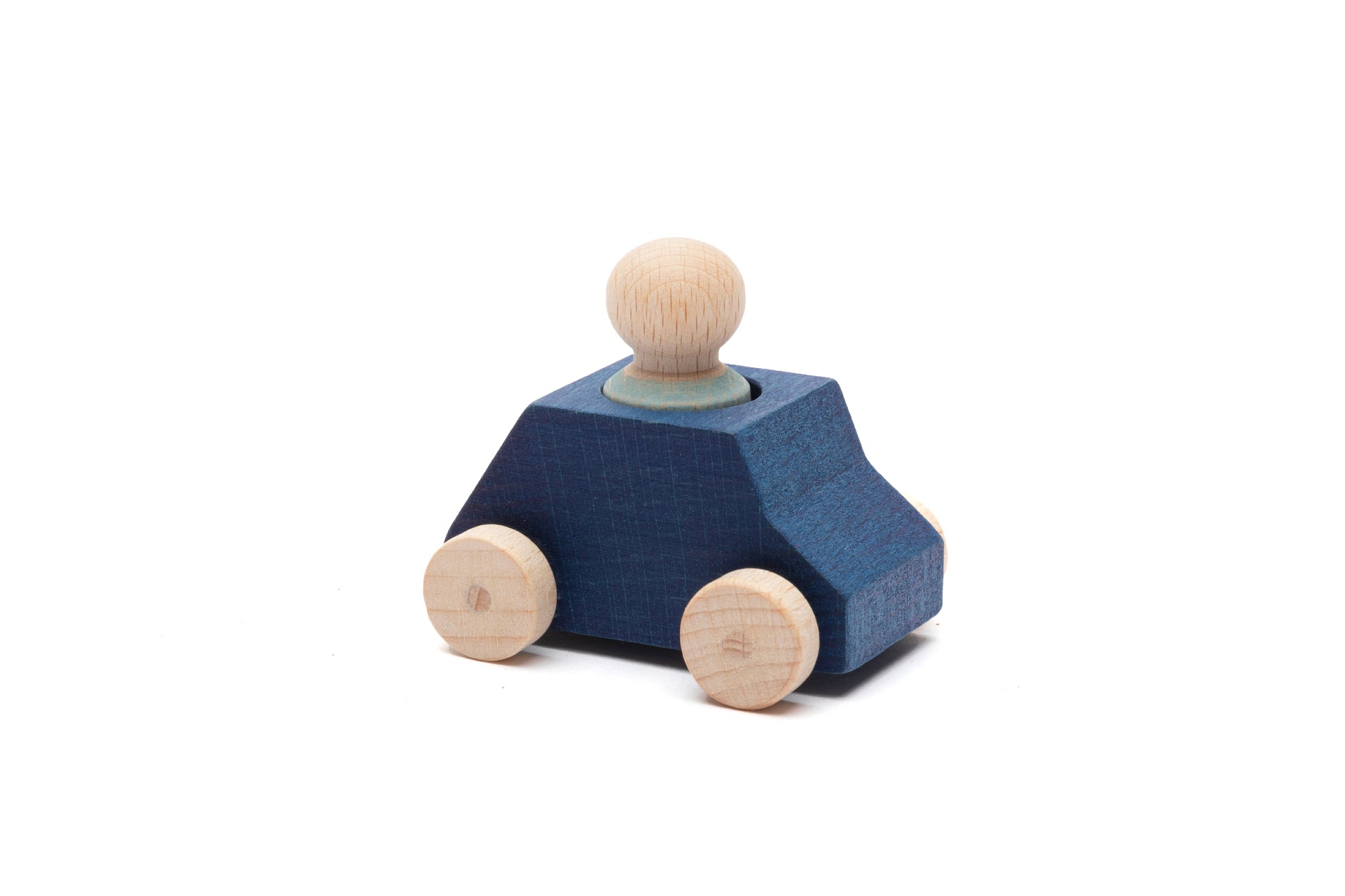 Product includes one car (blue) and one wooden figurine (grey). The little Lubu cars are available in 8 different colours.