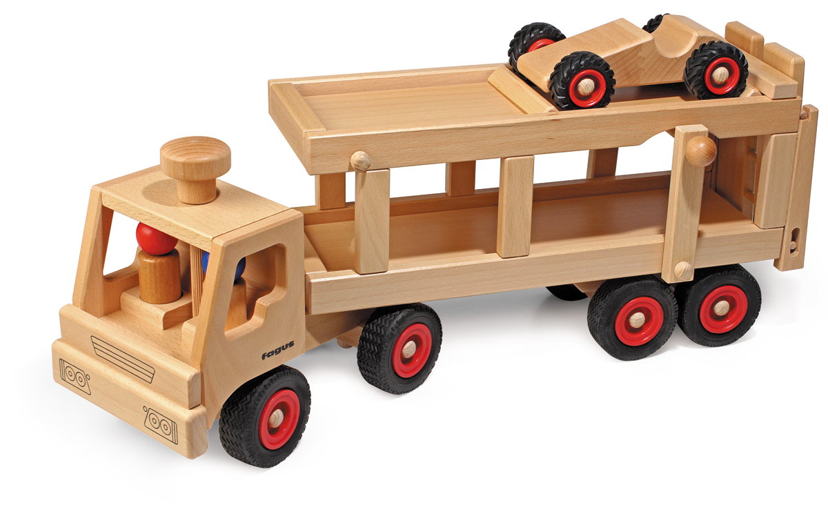 As with all Fagus toys, the Fagus Car Transporter is hand-made in Germany out of solid beechwood ("Fagus" is Latin for beech) and does not contain any nails, screws or staples. Even the most complex Fagus vehicles are made by interlocking, doweling, and/or gluing wood together by hand. Many of the Fagus vehicles have won the "Spiel Gut" good toy award, which signifies that a toy meets the highest standards for play value, educational value, the material used, workmanship, construction, durability, safety, design, size, quality of the instructions for playing or making and suitability for the appropriate age group.
