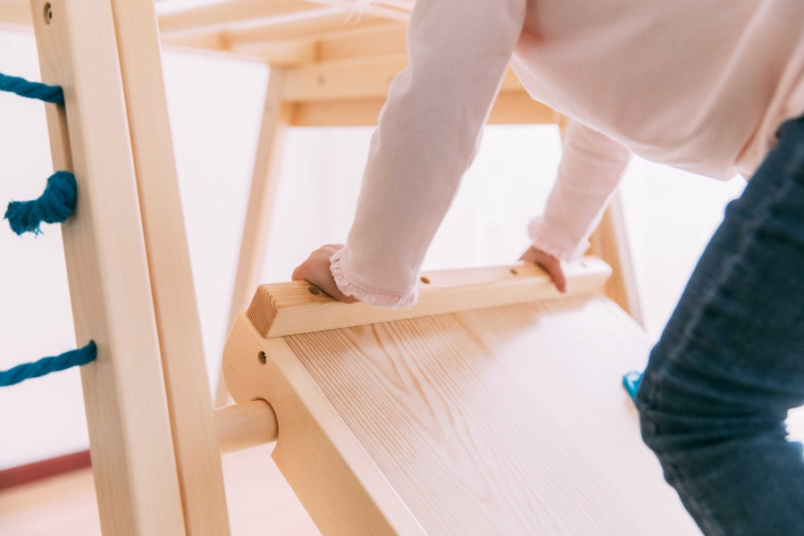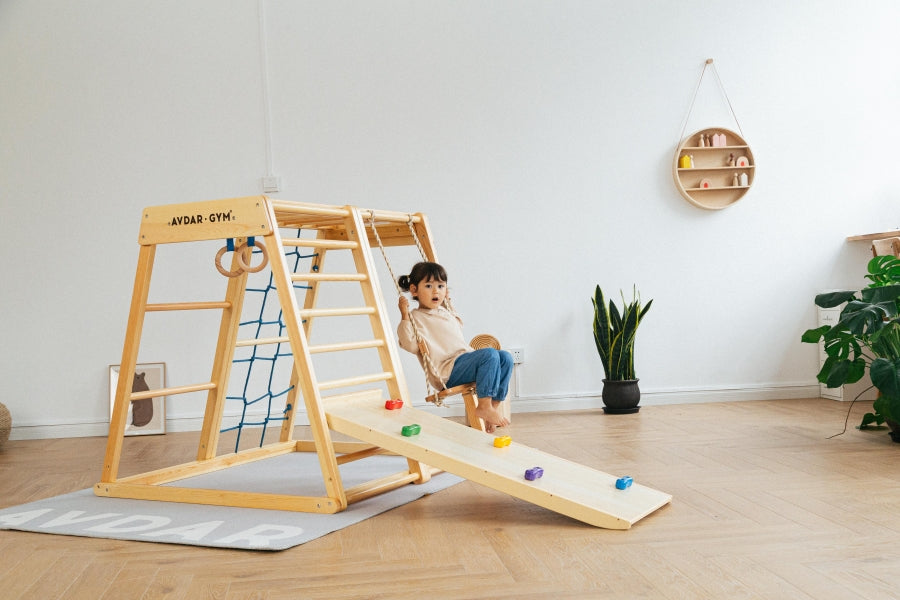 Made out of pinewood, this durable classic trapets set gives the child an awesome combination of play to help develop physical strength, balancing skills, building confidence all at their own pace. And definitely something that would bring them infinite joy just by playing.