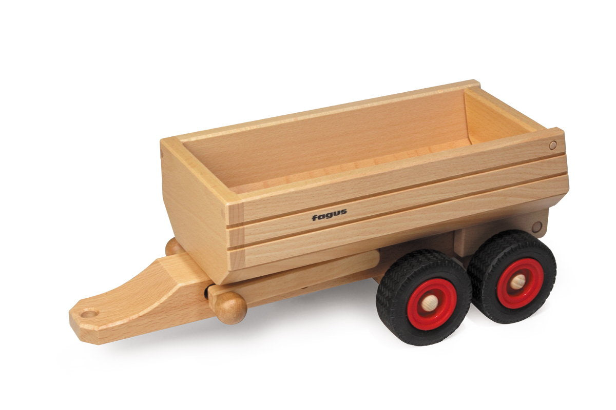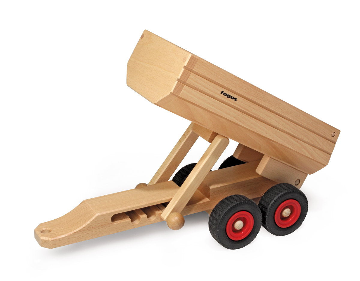 As with all Fagus toys, the Container Tipper Trailer is hand-made in Germany out of solid beechwood ("Fagus" is Latin for beech) and does not contain any nails, screws or staples. Even the most complex Fagus vehicles are made by interlocking, doweling, and/or gluing wood together by hand. Many of the Fagus vehicles have won the "Spiel Gut" good toy award, which signifies that a toy meets the highest standards for play value, educational value, the material used, workmanship, construction, durability, safety, design, size, quality of the instructions for playing or making and suitability for the appropriate age group.