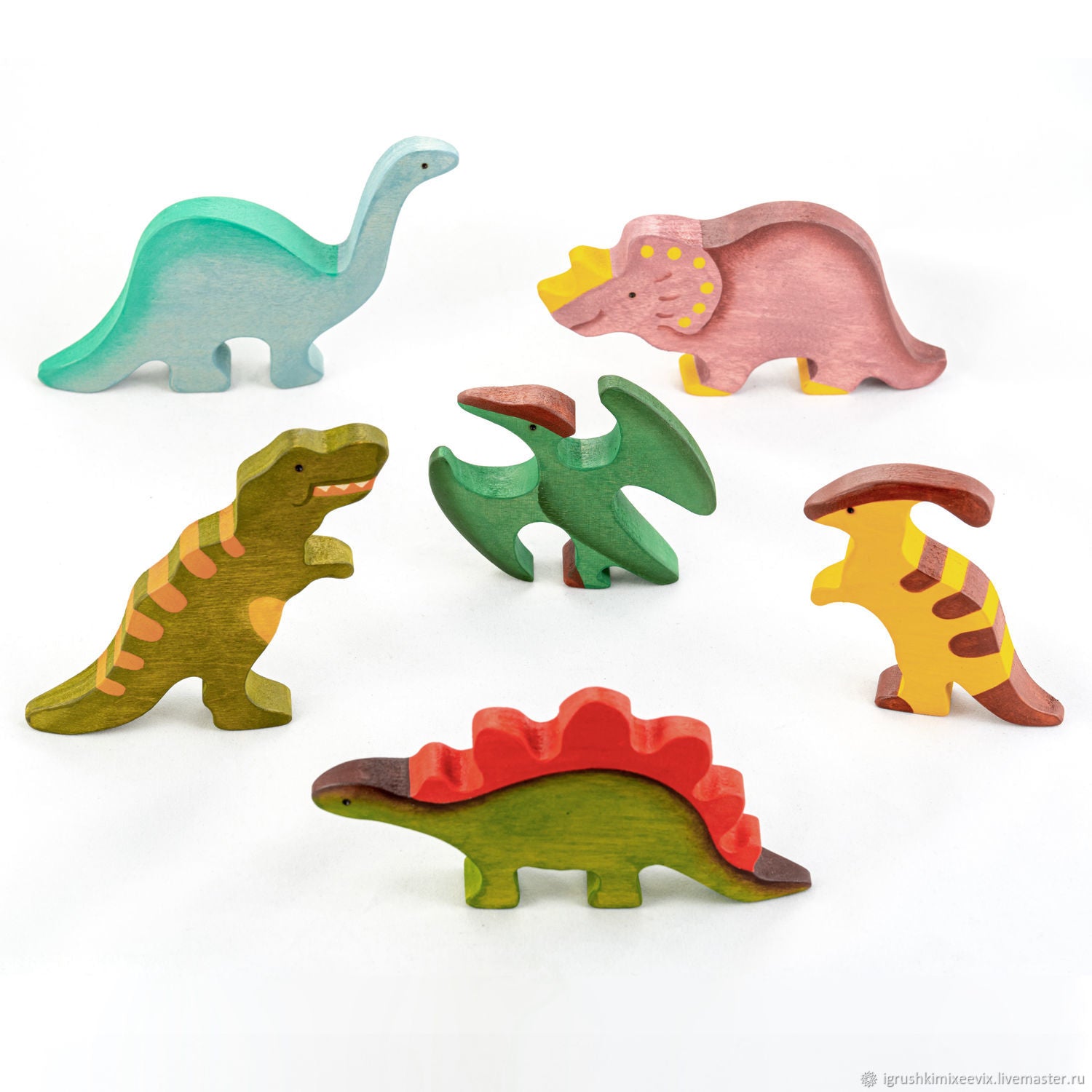 Let your child learn more about dinosaurs that lived and walked the face of Earth millions of years ago! This set of 6 dinosaurs are made of solid birch wood, coloured with safe, water-based paint. With rounded ages, it is safe for young children to play with.