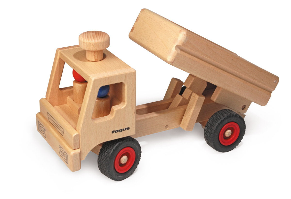 This realistic Fagus Dumper Truck is great to carrying farm animals or materials from one place to another with the toy being steerable. It has a large bed where the tipping tray can be tilted and also a swinging tailgate, allowing the materials to slide out easily, exactly like a real dumper truck!