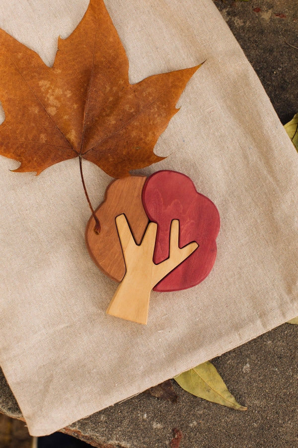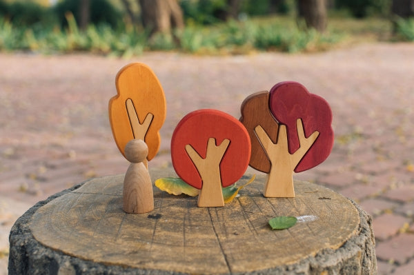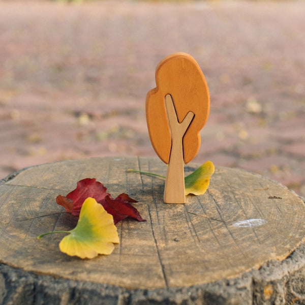 With the beautiful colour of fall, these flat fall trees come as a really great addition to a forest scene with other toys. Each tree comes in either 2 or 3 pieces, fitting together like a puzzle. It also comes with a linen drawstring back, making it easy to bring around on the go.