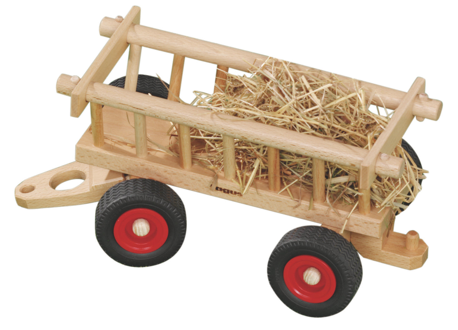 As with all Fagus toys, the Fagus Hay Wagon is hand-made in Germany out of solid beechwood ("Fagus" is Latin for beech) and does not contain any nails, screws or staples. Even the most complex Fagus vehicles are made by interlocking, doweling, and/or gluing wood together by hand. Many of the Fagus vehicles have won the "Spiel Gut" good toy award, which signifies that a toy meets the highest standards for play value, educational value, the material used, workmanship, construction, durability, safety, design, size, quality of the instructions for playing or making and suitability for the appropriate age group.