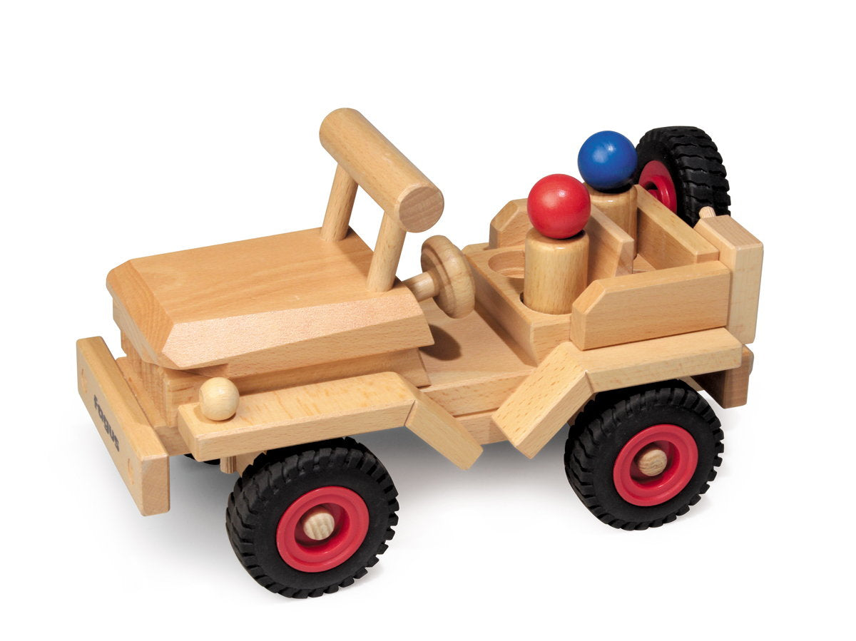 As with all Fagus toys, the Fagus Jeep is hand-made in Germany out of solid beechwood ("Fagus" is Latin for beech) and does not contain any nails, screws or staples. Even the most complex Fagus vehicles are made by interlocking, doweling, and/or gluing wood together by hand. Many of the Fagus vehicles have won the "Spiel Gut" good toy award, which signifies that a toy meets the highest standards for play value, educational value, the material used, workmanship, construction, durability, safety, design, size, quality of the instructions for playing or making and suitability for the appropriate age group.