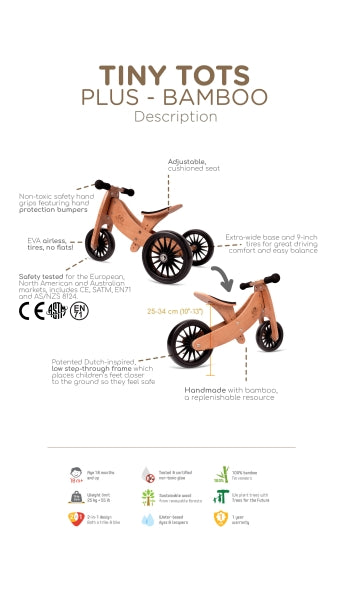 The Kinderfeets Tiny Tot PLUS is a larger version of the popular Tiny Tot, our 2-in-1 bike that easily converts from a tricycle to a 2-wheel balance bike.
