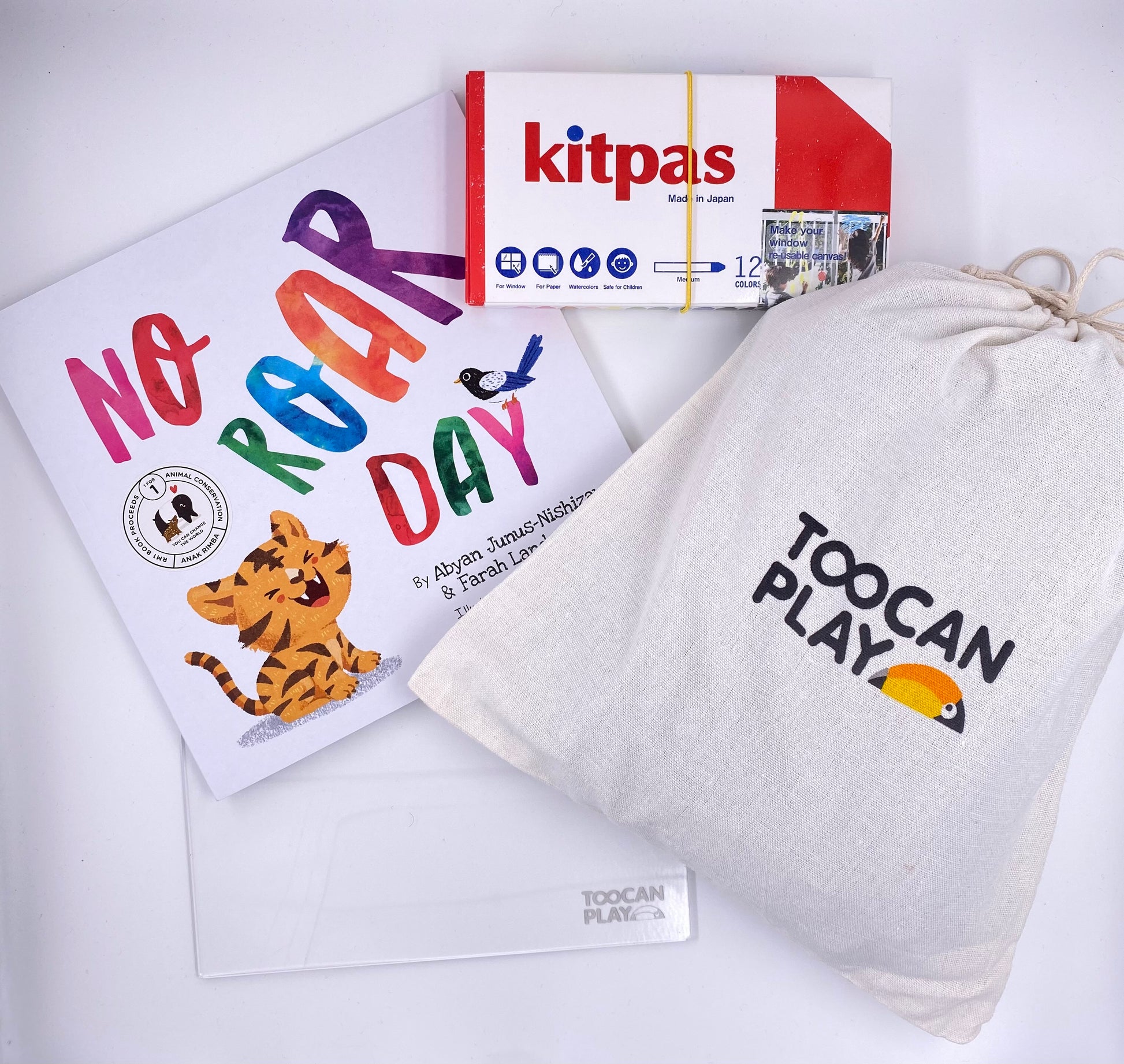As you and your child read, let your child doodle on our all-new acrylic board, easy to clean when drawing with the KITPAS art crayon. This bundle also comes with a little bag for you to keep all the items, making it easy as an on-the-go activity pack.
