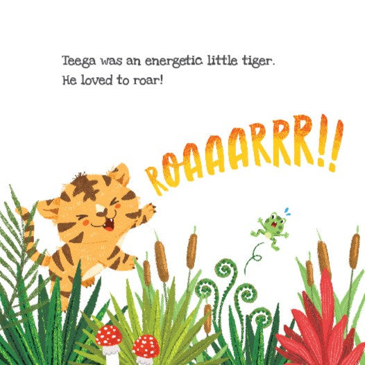 Want to learn more about tiger? Meet Teega the little tiger who loves to ROARRRR! One day his brother Teebo told him that Teega's Roar was too loud. Feeling upset, Teega then declared that it was a NO ROAR DAY! A tiger that doesn't roar? With the help of his new chirpy friend, Teega learnt how to use his voice and formed an unexpected friendship along the way