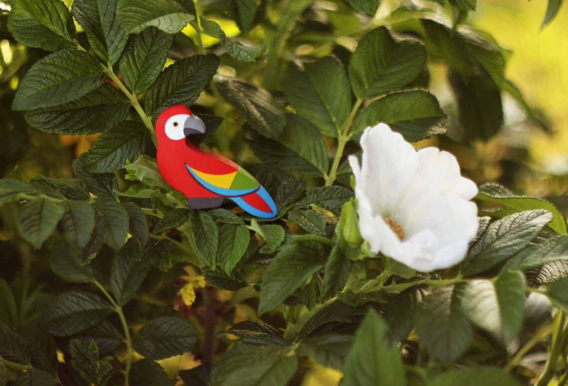 Loving the bright vibrant colours of this red parrot. This is a perfect addition to the bird set or just as it is!
