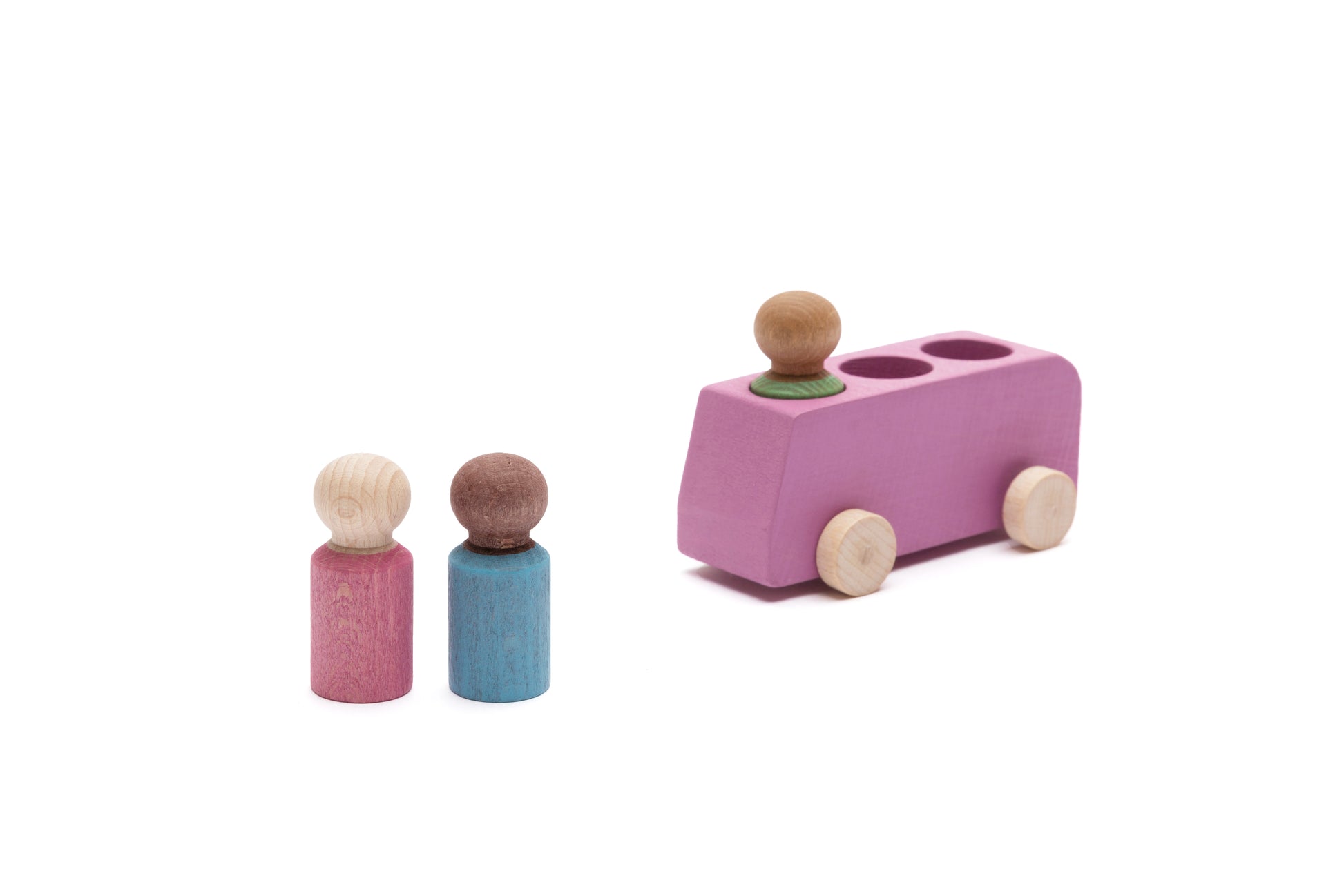 The pink bus comes with a mint, fuchsia and sky coloured figure.