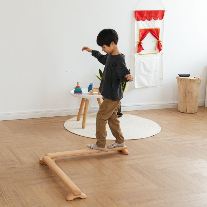 This balance beam basic unit plus the extension consists of 5 parts, with a loading bearing of 100kg. Made from beechwood, this balance beam allow your child to develop balancing and motor skills.
