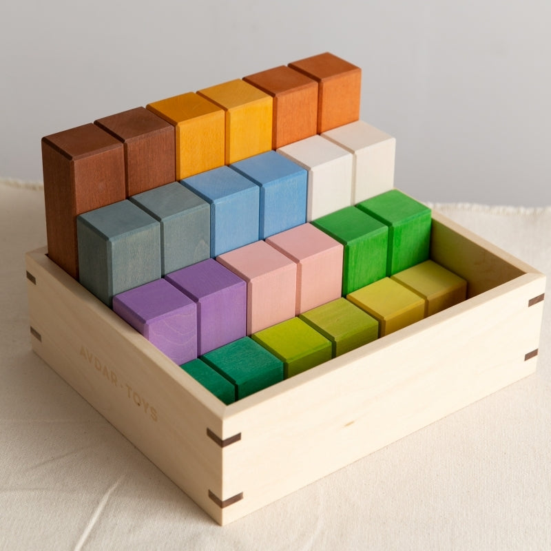 With 4 different length size and 6 different colours, this set can help your child to learn basic math as each subsequent block is exactly cube larger. These blocks can also be used as building blocks, creating stacking games or colour or size sorting games. Definitely a product that promotes infinite ways of playing!