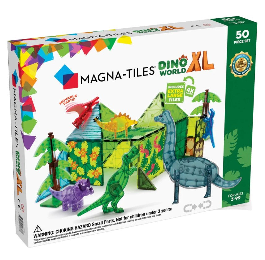 Something tropic-cool has arrived! This XL Dino World set is larger than life with oversized tropical-themed tiles — our BIGGEST tiles ever — plus all six of the Magna-Tiles® dinosaurs, and new-to-the-world magnetic trees. The first-ever, extendable magnetic trees with lush, magnetic leaves. Get ready to spark the curiosity for STEAM topics, including paleontology