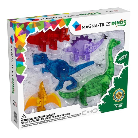 Stomp, chomp, roar, and soar! Get ready for endless hours of screen-free fun and oversized play potential with these large magnetic dinosaurs. Unique, vibrant colors and moving parts encourage open-ended playtime and STEAM learning.