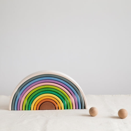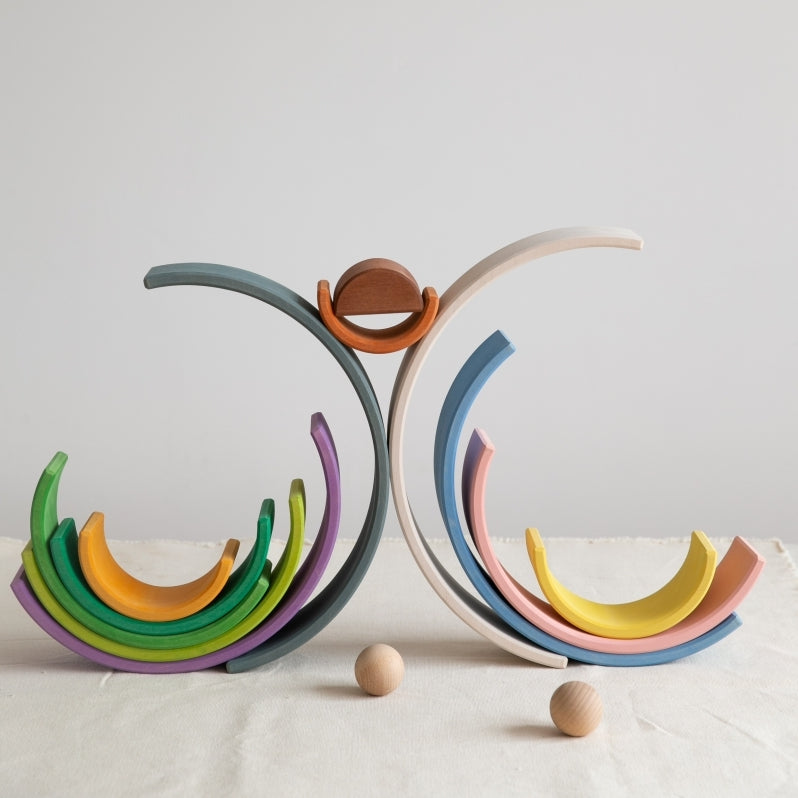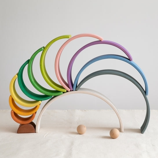 This lovely rainbow stacker is a great must-have if open-ended play is something you believe in. A superb product to help develop fine motor skills, balancing skills and stacking skills. There are endless ways to stack these rainbows, learning simple physics and logic along the way.