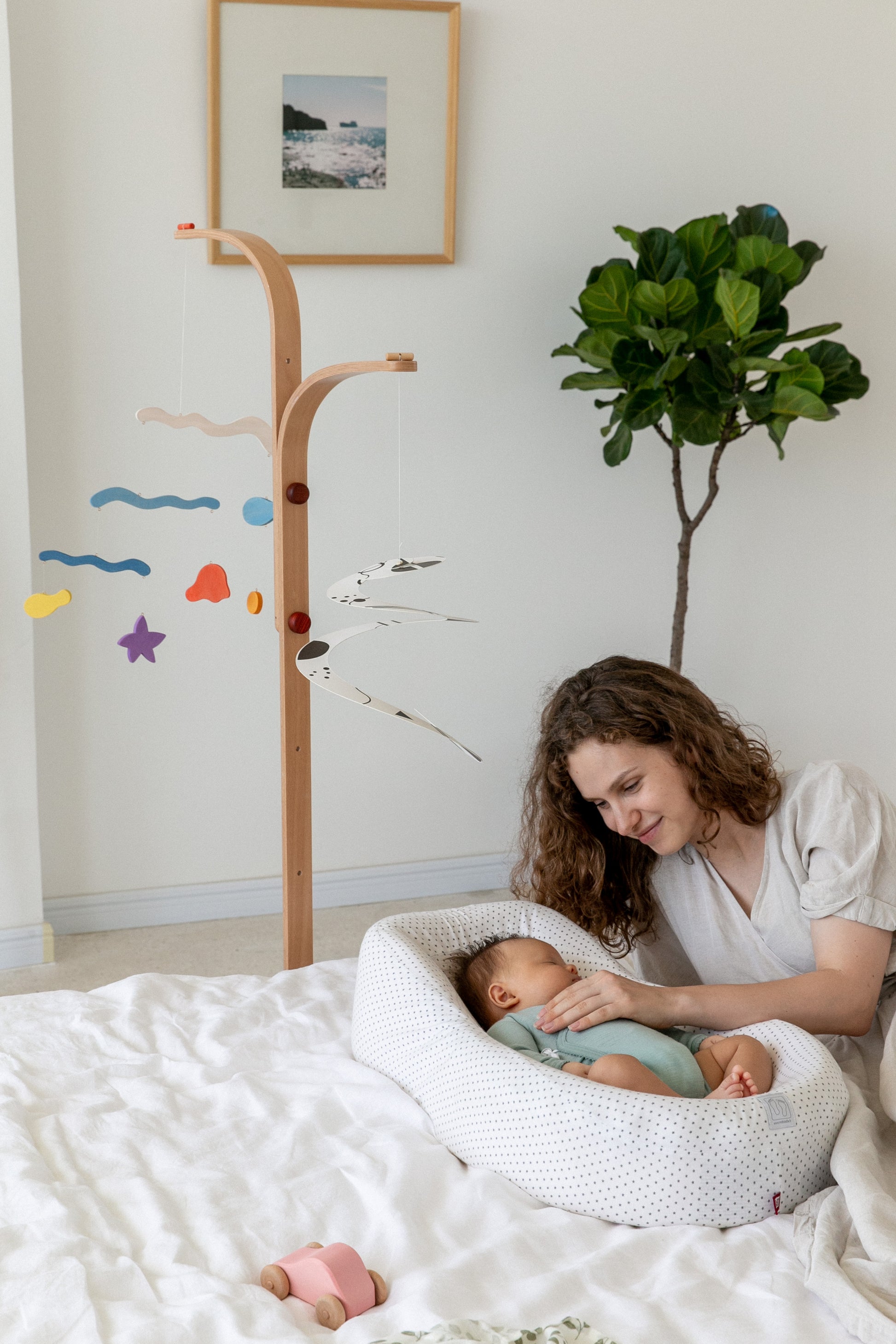 This beautifully designed AVDAR seagull mobile hanger is the latest addition to Avdar's home series. This mobile hanger set comes with a wooden wave mobile and also a monochrome mobile inspired by the artwork of the great Wassily Kandisnky, ready to give the greatest benefit to your newborn.