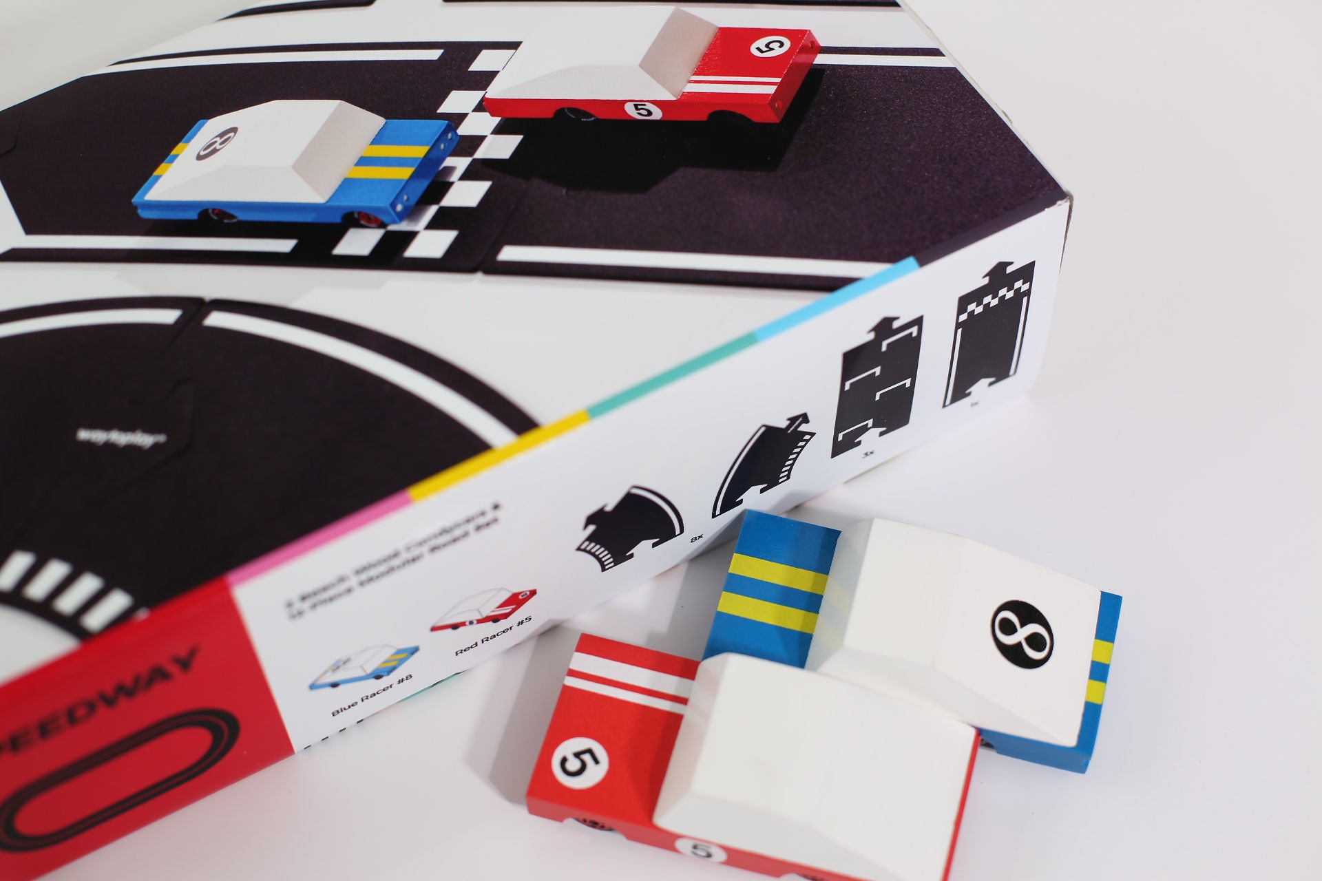 For those with a need for speed! Left turns only with this set. Perfect for any car lover who wants to hit the track for a few time trials. This set includes 12 Road Pieces that assemble into a closed loop. Red Racer #5 and Blue Racer #8 are ready to go with this kit. Made in Germany. Dutch Design. Flexible, waterproof and 100% child-safe!