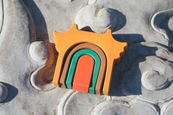 This cute Tingzi (亭子) is a great addition to any pretend play scene. Nicely crafted from wood, this is a great for children to explore the various ways of including this Tingzi in any play scene. Come in 4 pieces of wood, it can be separated out and used it to complement other stacking activities.