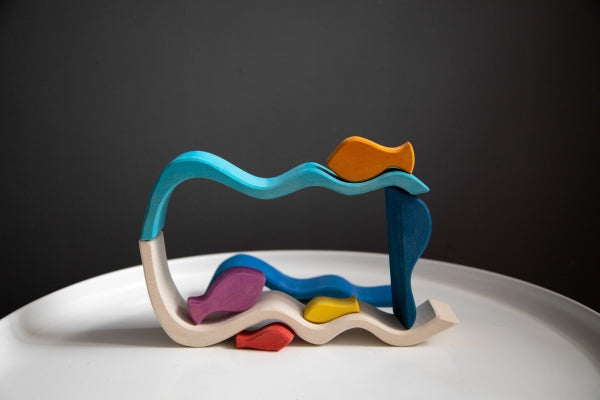 A one of a kind wave block stacker that allows your child to develop fine motor skills and to allow creative minds to grow. This set comes with 4 adorable fish, which is a good set for pretend play.